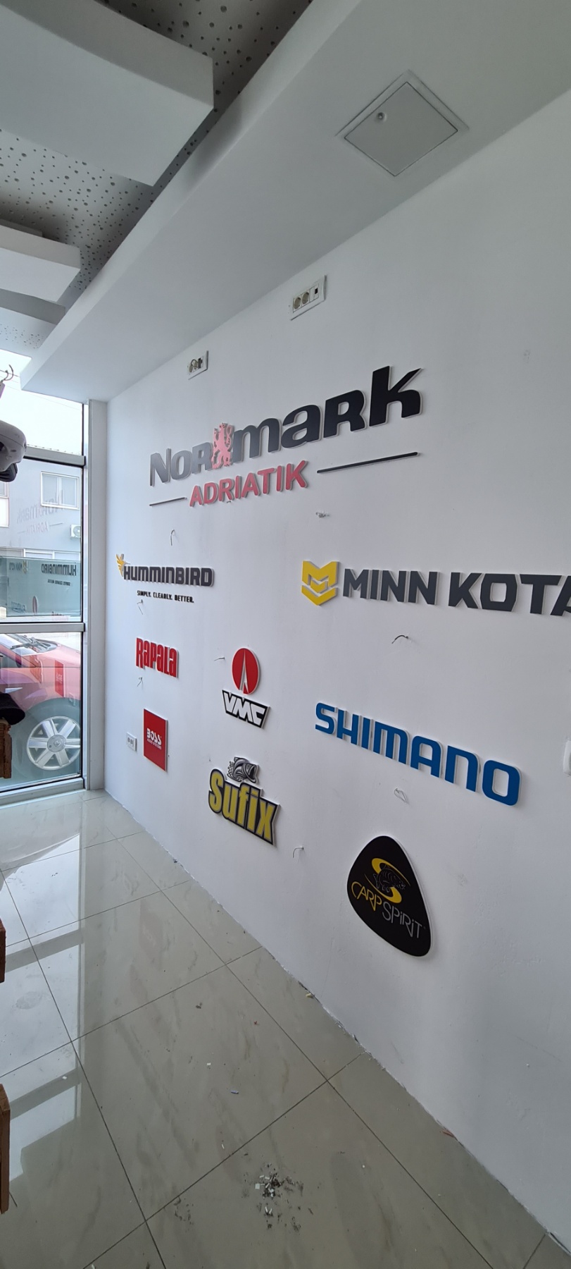 3D nesvjetleći zidni reljefni vizuali, tekstovi te logotipovi. Za izradu indoor natpisa koristimo sve materijale: plexi, XPS, EPS, Inox, MDF, drvo, forex.
